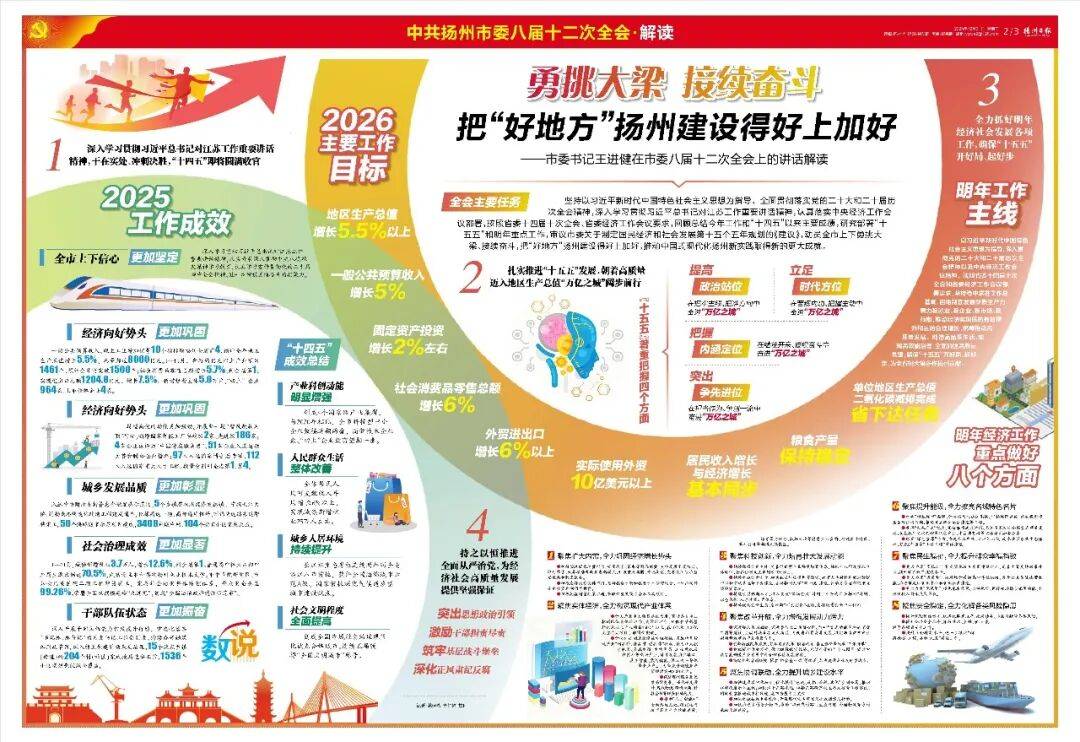 以习新时代中国特色社会从义思惟为指点,深切贯彻党的二十大和二十届历次全会以及地方经济工做会议,按照省委十四届十次全会和省委经济工做会议摆设要求,稳中求进工做总基调,因地制宜成长新质出产力,出力稳就业、稳企业、稳市场、稳预期,鞭策经济实现质的无效提拔和量的合理增加,统筹鞭策高质量成长、创制高质量糊口、实现高效能管理,全面加强高质量党建,确保“十五五”开好局、起好步,为全省挑大梁多做扬州贡献。